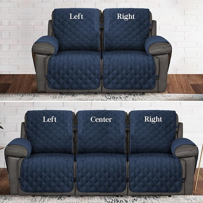 - Easy to Install: Drape your double recliner furniture with the cover, inserted the backing long tuck inserted into the gap of the sofa and attach the tuck elastic straps at each side into the gap between the back and arm to prevent cover sliding.