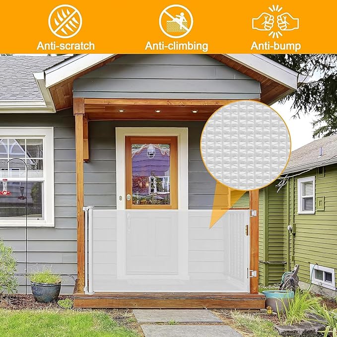 - [Perfect Fit Indoor and Outdoor ] Extra large baby gate can be used both indoors and outdoors, such as open kitchens, at the bottom of stairs, doorways, decks etc. the baby gates extra wide Works as both a mesh baby gate and a mesh dog gate to providing a safe environment to play.