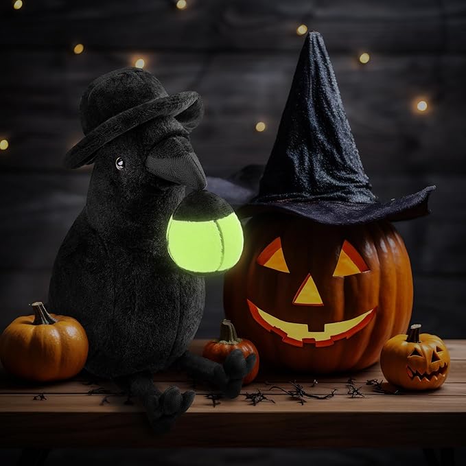 ZHONGXIN MADE Crow Plush Toy - Luminous Crow Stuffed Animals 10in, Cute Crow Bird Raven Animal Dolls, Gift Toys for Kids Birthday Gifts Glow in The Dark