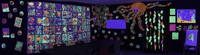 - The color glows under black light!