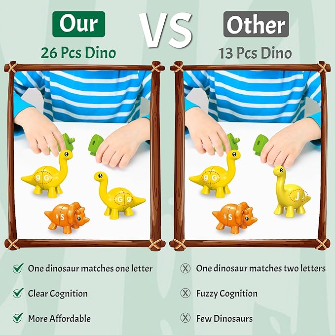 - Quality ABC Learning Dino Toys: ABS plastic is durable and can withstand countless throws and hits, and smooth workmanship, and rounded corners for easy grip. Designed for little hands, it is easy to push and match.