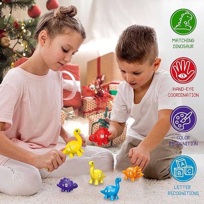 Christmas Party Games 26 Pcs Alphabet Learning Dinosaur Toys,Uppercase Paired Lowercase Matching Letters Color Sorting Fine Motor Toy, Montessori Toys for Kids for 2-5 Boys Girls
