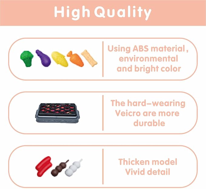 - Great Fun Educational Toys:Our pretend cooking playset encourages your children to use their imagination and creativity while teaching them about different kitchenware, colors, and foods and helping promote their color recognition, eye-hand coordination, intelligent learning and learn more about cooking. Perfect for cooking chef pretend play, role play