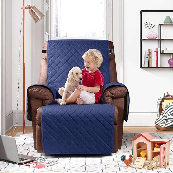 KinCam 100% Waterproof Recliner Chair Cover, Reclining Couch Covers for Pets, Dogs, Recliner Couch Slipcover Furniture Protector with Elastic Straps for Kids(28", Blue)