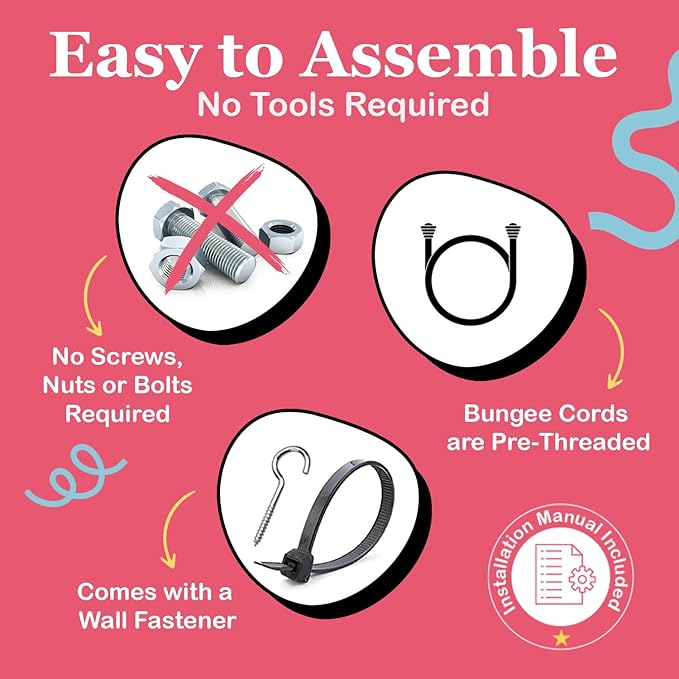 - EASY TO ASSEMBLE: With no screws, nuts or bolts, all we recommend is a mallet or hammer to secure the pipes in the connectors. The bungee cords come pre threaded for easy assembly!
