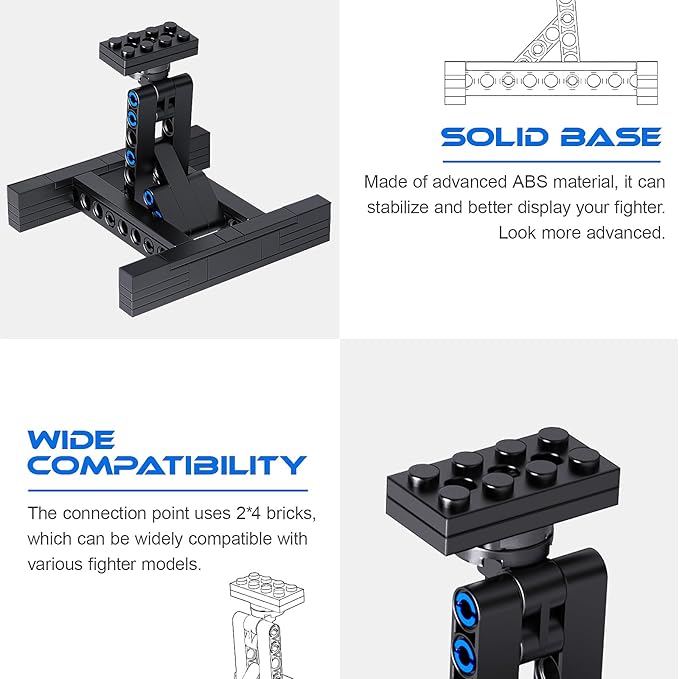- Multifunctional Stand for Lego Fighter : This is a multifunctional stand with a wide range of compatibility, the connection points are 2x4 bricks, you can infer whether it is compatible with the stand based on the structure of the fighter building kit.