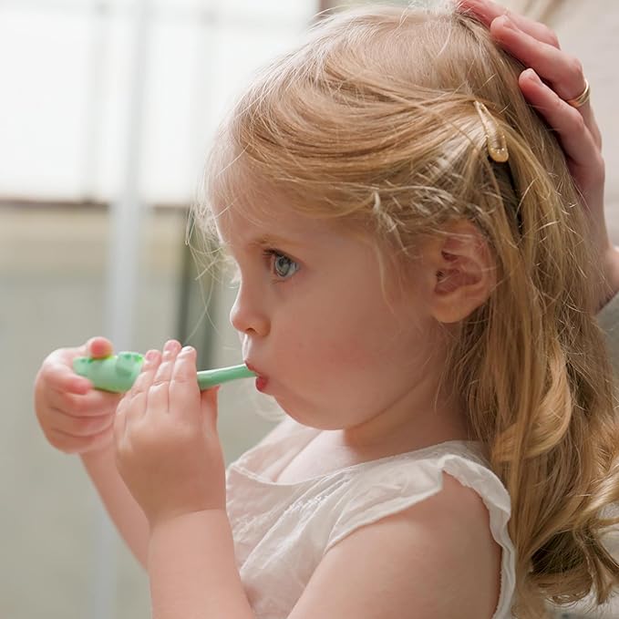 - CUTE DESIGN WILL KEEP LITTLE ONES SMILING: The training toothbrush’s cute alligator design encourages fun while teaching good habits