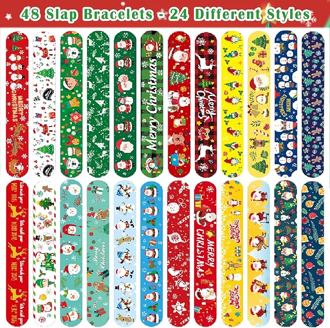 - FUN&COLORFUL CHRISTMAS SLAP BRACELET-With 48 snap bracelets in 24 playful styles, Viicoor slap bracelets are designed to bring joy and excitement to every child's wrist