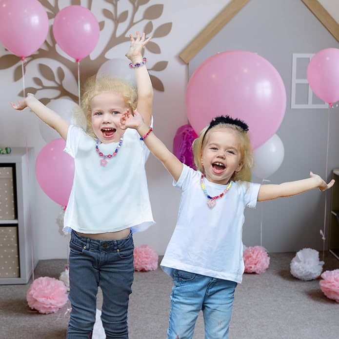 - Perfect Gifts: These colorful necklaces and bracelets are great gifts for toddlers, kids, and little girls. Toddler jewelry is great for girl gift, birthday gift, girl party favors, party dress up, pretend play party, goodies bags filler, doll jewelry, Christmas, Easter, Valentine’s Day, etc.