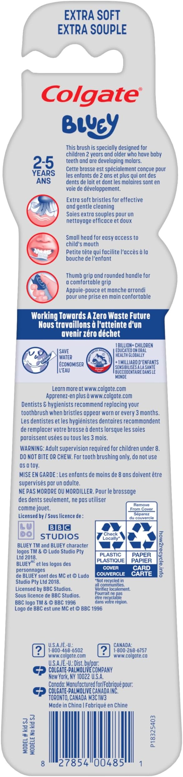 - Includes two (2) individual Colgate Kids Toothbrushes with Extra Soft Bristles and Suction Cup, Bluey Kids Toothbrush Pack