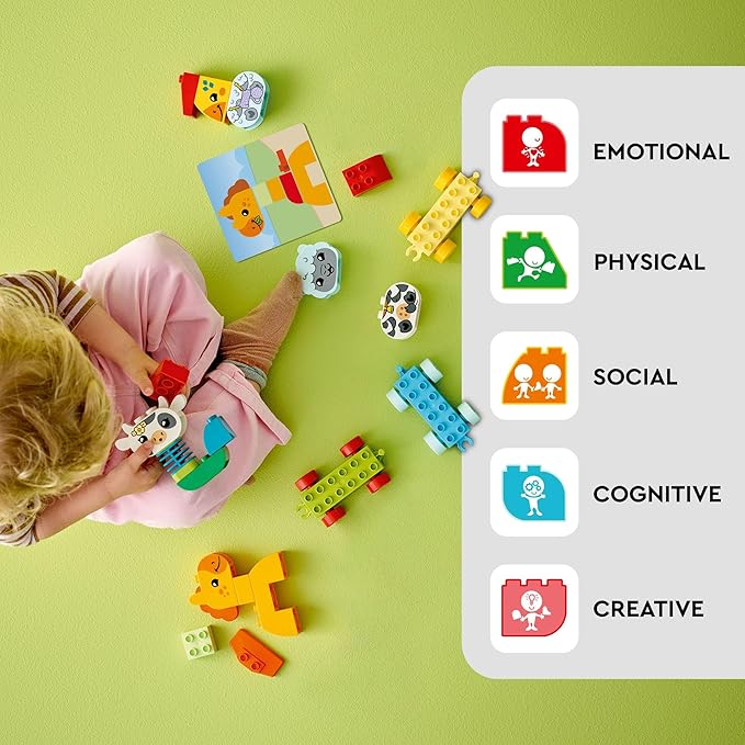 - Animal vehicle toy – This LEGO DUPLO My First Animal Train building set for ages 18 months and up includes 4 buildable animal figures and 3 detachable carriages for pull-along, creative role play