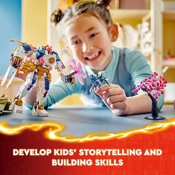 - More customizable mechs – Kids can swap and combine parts from Sora’s mech with Cole’s Elemental Earth Mech (71806) and Kai’s Elemental Fire Mech (71808), which are sold separately