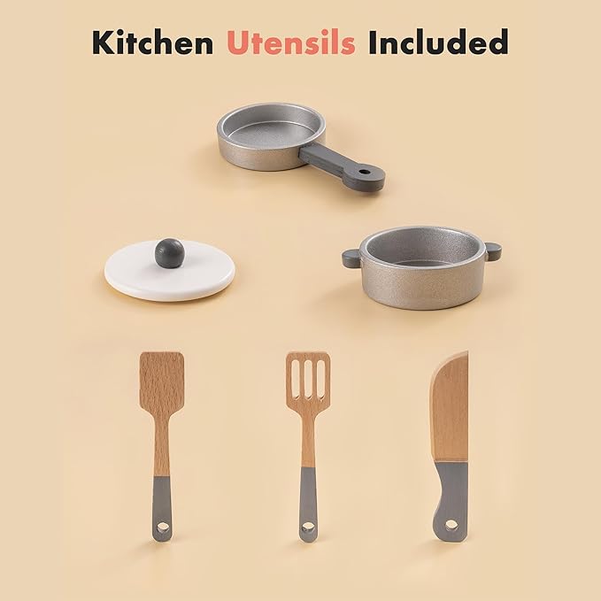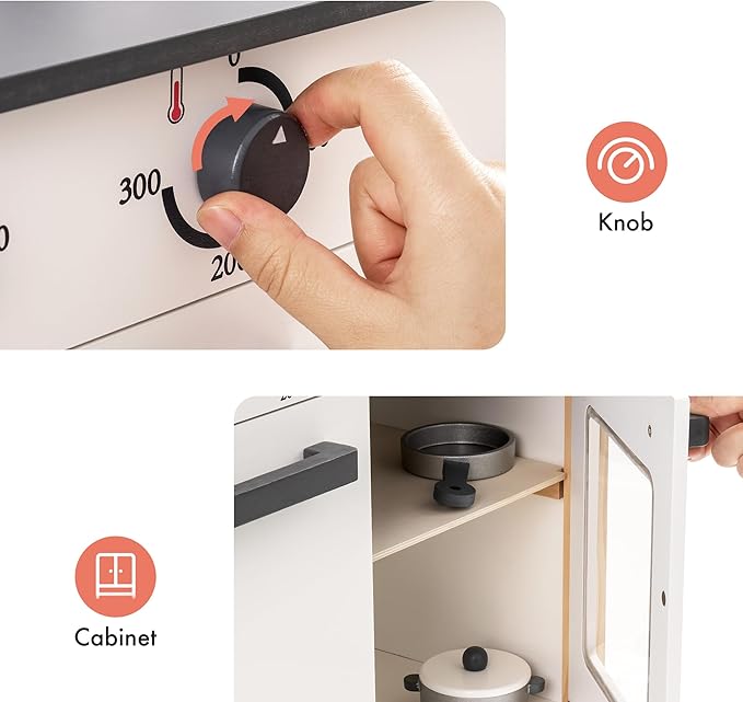 • EUROPEAN-INSPIRED DESIGN: This kids kitchen playset draws inspiration from European style, immersing children in a world of cooking filled with exquisite details and a premium appearance. It's not just for entertainment; it's also a part of home decor.