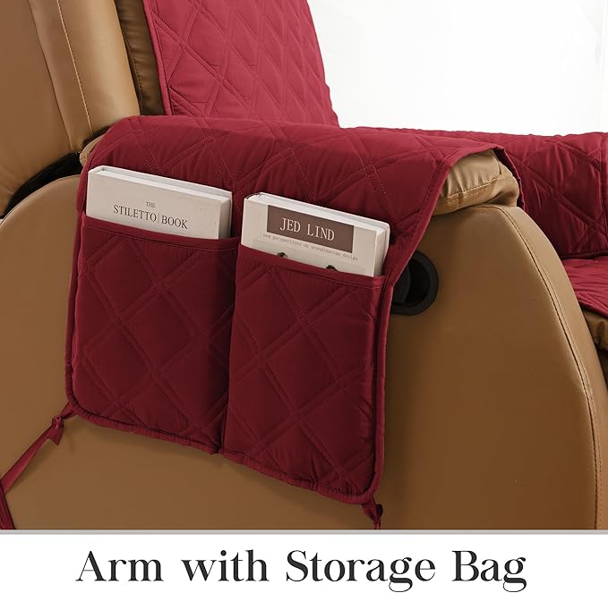- Easy to Install: Drape your double recliner furniture with the cover, inserted the backing long tuck inserted into the gap of the sofa and attach the tuck elastic straps at each side into the gap between the back and arm to prevent cover sliding.