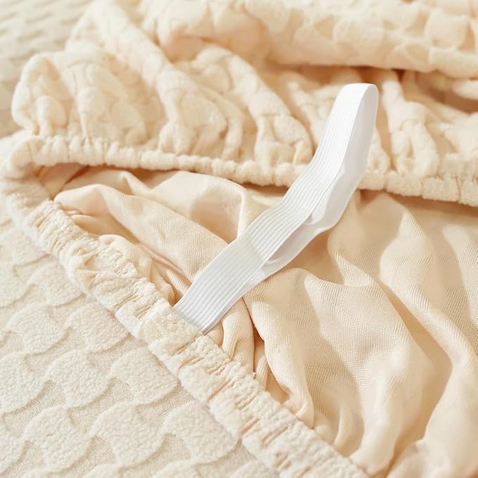vctops 6 Pieces Jacquard Plush Recliner Loveseat Slipcover Stretch Soft Sofa Couch Cover Anti-Slip Solid Color Furniture Protector with Elastic Bottom for Kids Cats Dogs(Cream,2 Seat)
