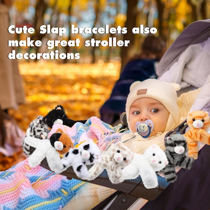 - Kittens Theme Party Favors for Kids Birthday: a pack of 8 plush animal slap bracelets, 8 kittens of different colors, cute and exquisite, enough to wear and share with classmates, or to add some diversity to their own bracelet collection; This charming set is suitable for various first day of school parties, offering both fun and variety
