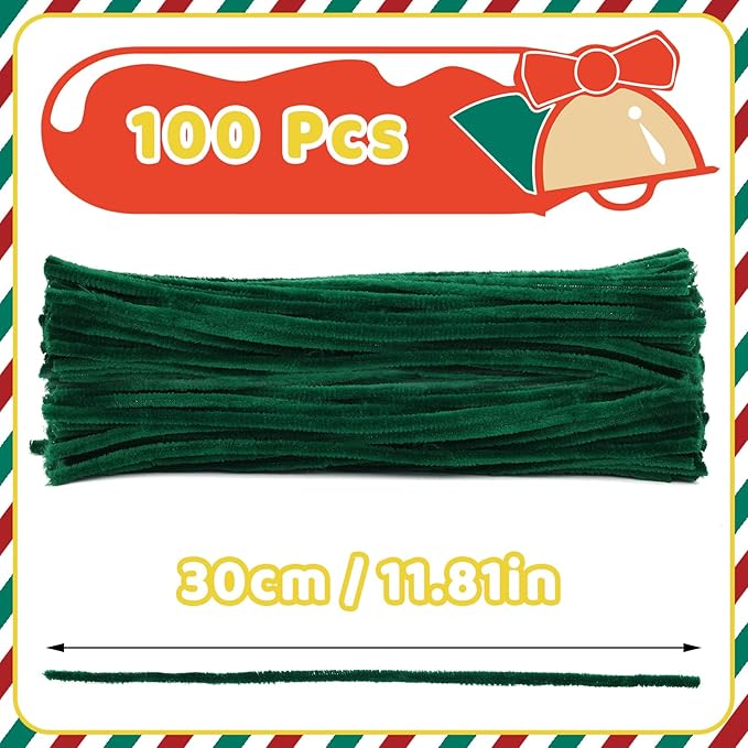 Pipe Cleaners, 100PCS Dark Green Pipe Cleaners Craft Supplies, Pipe Cleaners Bulk Fuzzy Sticks for DIY Art and Craft Projects Home Decoration