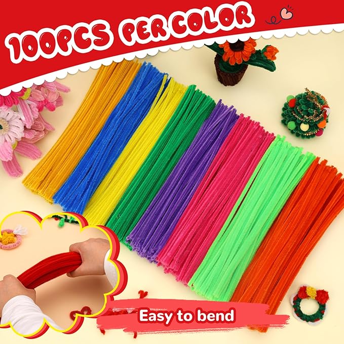 - Perfect Present: Pipe cleaners craft supplies are ideal accessory for craft projects such as making flowers, vegetables, animals, holiday ornaments, etc.Suitable for classroom activities, family activities, craft projects, Christmas parties.