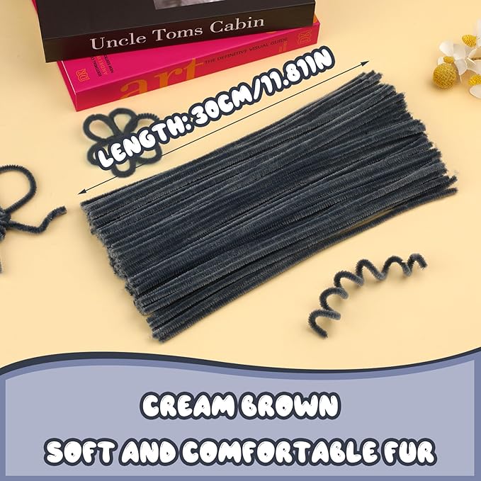 Pipe Cleaners, 100PCS Christmas Pipe Cleaners Craft Supplies, Grey Pipe Cleaners Bulk Fuzzy Sticks for DIY Art and Craft Projects Home Decoration