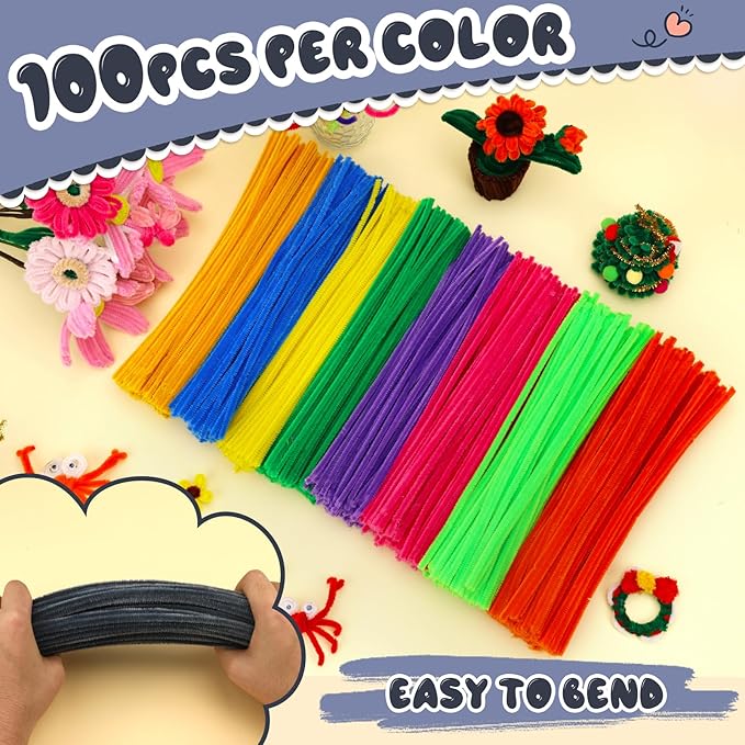 - Perfect Present: Pipe cleaners craft supplies are ideal accessory for craft projects such as making flowers, vegetables, animals, holiday ornaments, etc.Suitable for classroom activities, family activities, craft projects, Christmas parties.