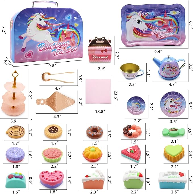 - [Princess-Inspired Design Fun] - Let your child step into the world of dream with a pretend tin teapot set that features beautiful designs fit for a princess. Gorgeous color matching design, more attractive to your children. It's a perfect addition to any tea time adventure for kids!