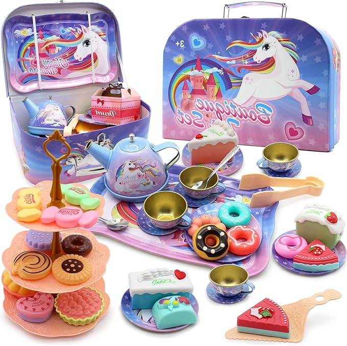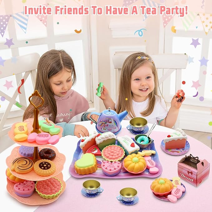 - [Host Magical Tea Parties] - Fuel your child's imagination with the kids tea party playset, designed for little girls to host enchanting tea parties with their friends and favorite toys. This playset comes complete with a teapot, cups, plates, and utensils, so your child can play hostess and serve her guests with style and grace.