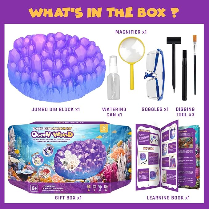 - PERFECT EDUCATIONAL GIFT: Ideal for budding marine biologists, geologists, and curious young minds, the PIBEX Ocean Fossil Dig Kit is a thoughtful gift for birthdays, holidays, Christmas, New Year, or any ocean-themed or mermaid birthday parties