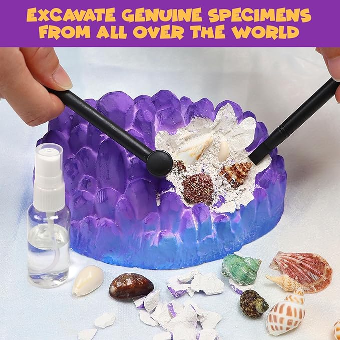 Ocean Fossil Dig Kit, Dig up 20+ Real Shells & Seasnails, STEM Educational Activity Set Sea Creatures Excavation Toy for Kids, Marine Biology Geology Science Kit, Gift for Boys and Girls Age 6+