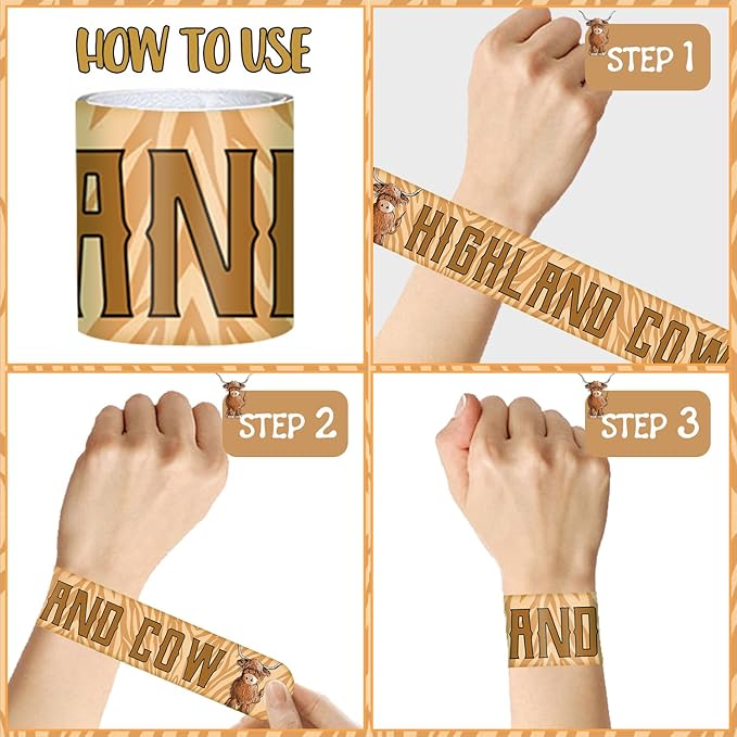 - MULTIPLE OCCASIONS: Highland cow slap bracelets prefect for animal party, zoo party, wild one party, highland cow baby shower, kids birthday party, pinata fillers, school classroom rewards, goodie bag fillers, party giveaway