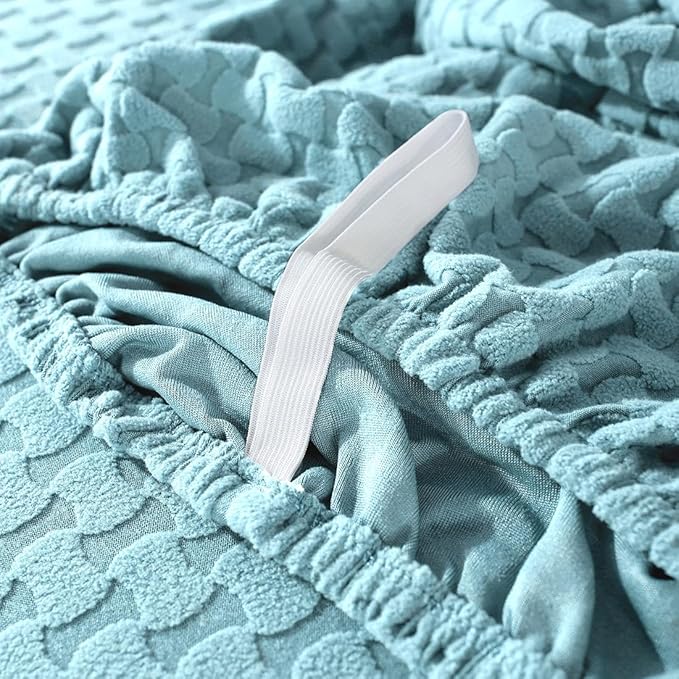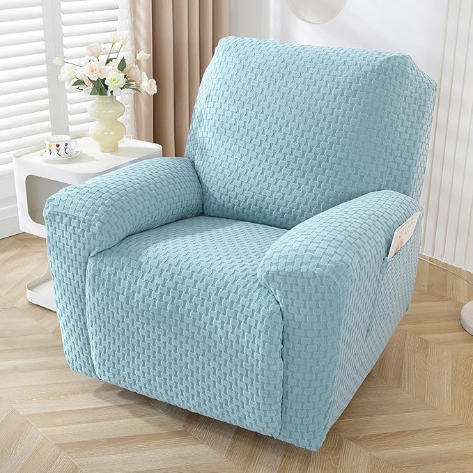 vctops 4 Pieces Jacquard Plush Recliner Slipcovers Stretch Soft Sofa Couch Cover Anti-Slip Solid Color Furniture Protector with Elastic Bottom for Kids Cats Dogs (Sky Blue,1 Seat)