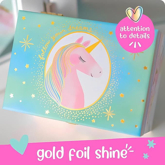 - Elegant Design - Elevate your daughter's unicorn décor with an exquisitely designed jewelry box for little girls. The intricate details on the kids jewelry boxes are crafted by curated artists & boast dazzling unicorn details that captivate and charm