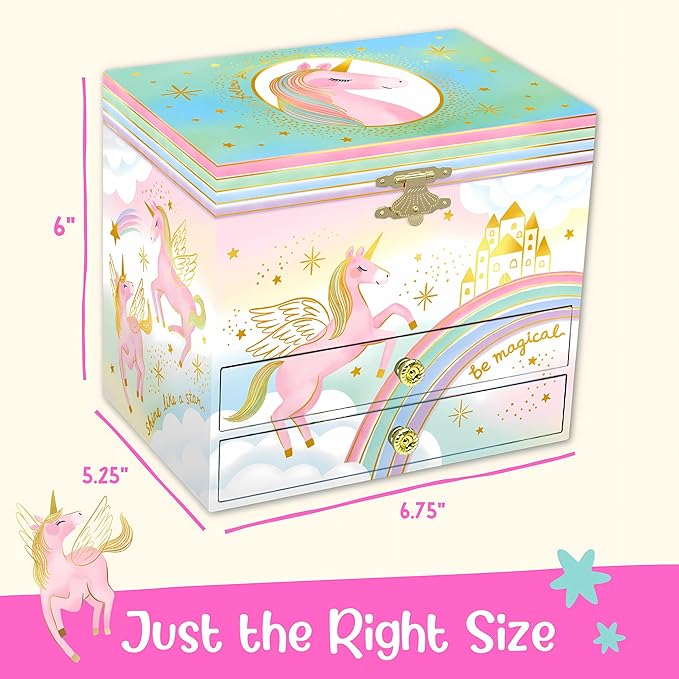- Enchanting Gift - In ready-to-gift packaging, they’re perfect unicorn gifts for girls aged 3, 4, 5, 6, 7, 8, 9 & 10 for birthdays, Christmas and more. Plus, the music jewelry boxes for girls complement existing unicorn toys & unicorn room décor