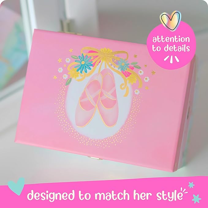 - Elegant Design - Elevate your daughter's ballet décor with an exquisitely designed jewelry box for little girls. The intricate details on the kids jewelry boxes are crafted by curated artists & boast dazzling ballerina details that captivate and charm
