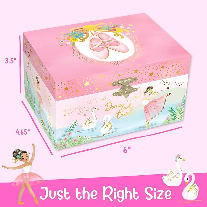- Ballerina Jewelry Box For Girls - Igniting awe & wonder in imaginative hearts, this musical jewelry box for girls brings radiant smiles to every little girl. Watch as she becomes immersed in the gracefully dancing ballerina, twirling to Swan Lake