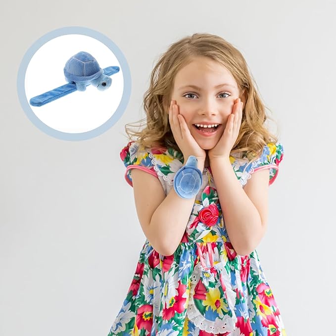 Gadpiparty Animal Slap Bracelets Turtle Snap Bands Stuffed Animals Huggers Plush Hug Slap Wristband Animal Slap for Kids Party Favors Supplies Sky-Blue