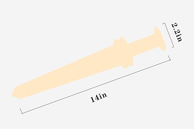 - The dimensions of the wooden sword: 14.2in long, 2.7in wide and 0.2in thick.