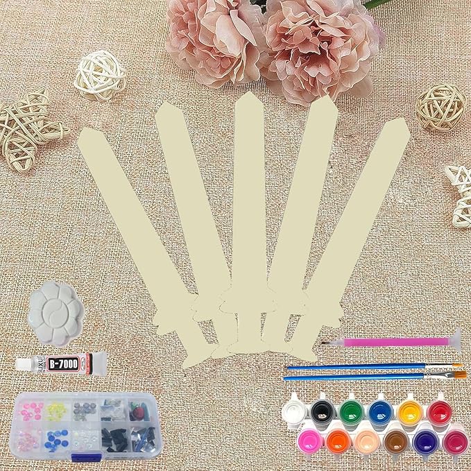 - Wooden sword set contains :5 thin wooden swords, 12 colors of paint and 2 paint brushes, 2 palettes, more than 200 fake diamonds in 10 colors, and 1 glue. More wooden swords can allow children to have different styles of swords, and also can play together in children