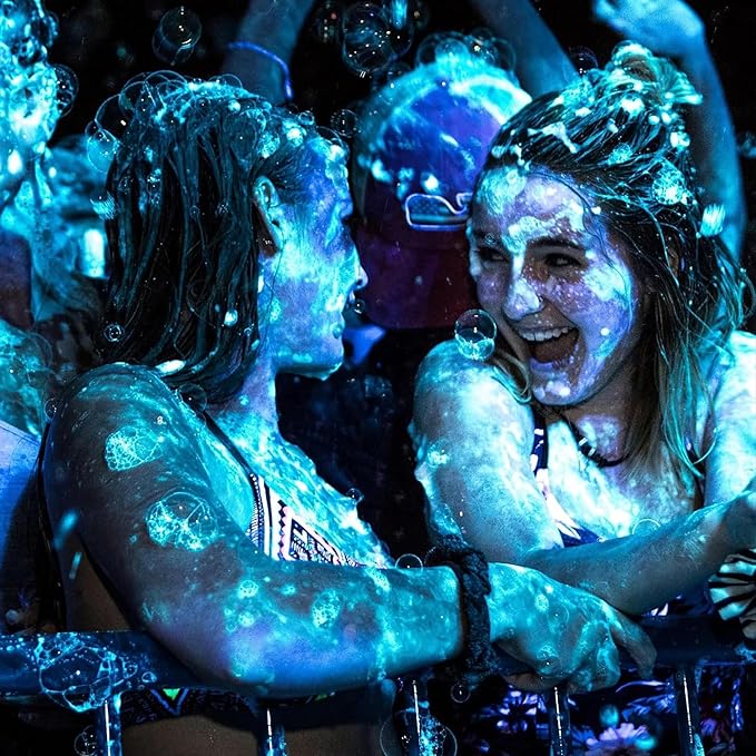 - NON-TOXIC, NON-STAINING FORMULA: Our glowing blacklight bubbles are safe, non-toxic, and non-staining, making them perfect for indoor or outdoor use. They're allergen free and will not cause reaction to senstive skin.