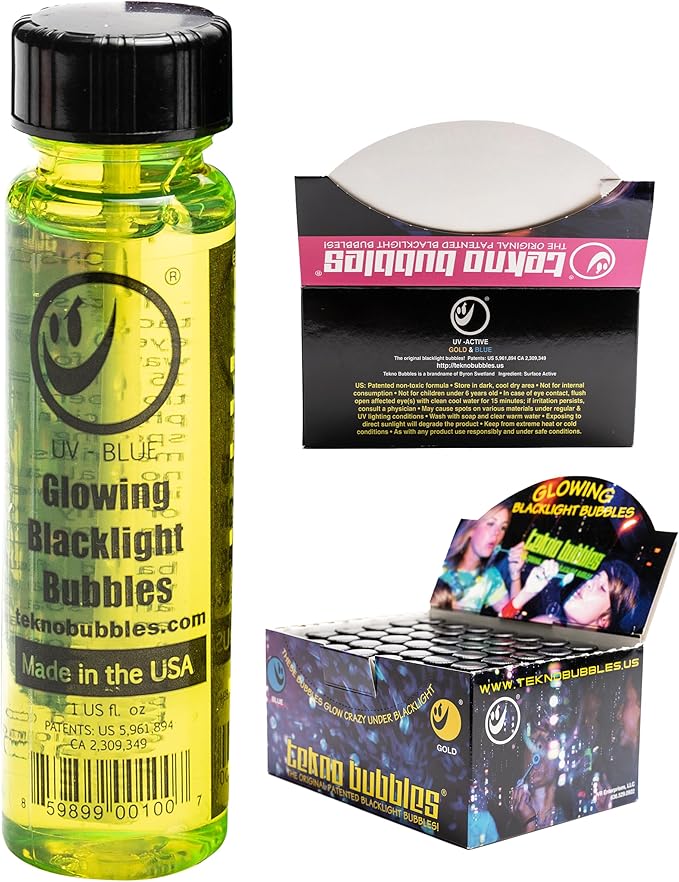 - BUBBLES THAT GLOW! Take your bubble fun to the next level with Tekno UV Bubbles that glow under UV light. NOTE: For best results, use under a 365nm wavelength UV blacklight.