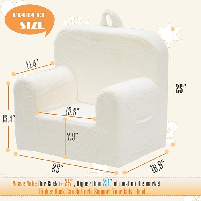 - đăHIGHER 25" BACK TO SUPPORT YOUR KIDS' HEADă⤠SUFUS Cuddly Toddler Plush Armchair is especially designed with Higher 25" Back for better support for your kids' head when they are reading, relaxing or snuggling. After analysing most customers' comments on similar armchairs, SUFUS decides to increase the height of back to add extra safety