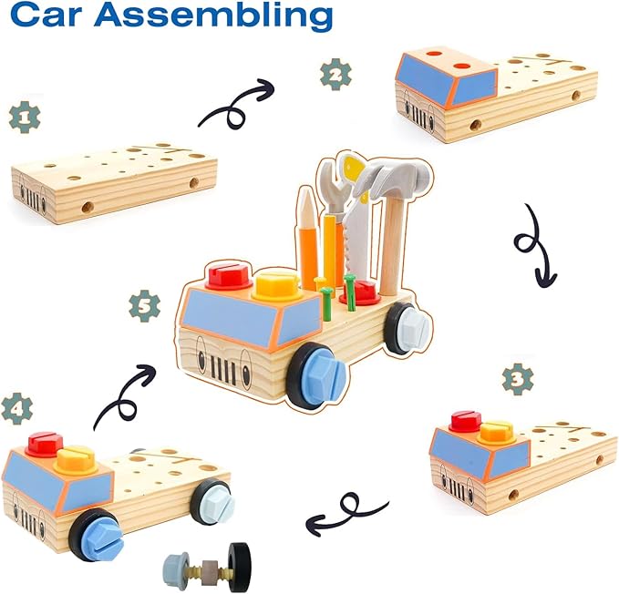 - Hands-On STEM Learning: Let kids build their own cars! Use screwdrivers, hammers, and wrenches to assemble wheels, screws, and wooden parts—enhancing creativity, problem-solving, and engineering skills through play.