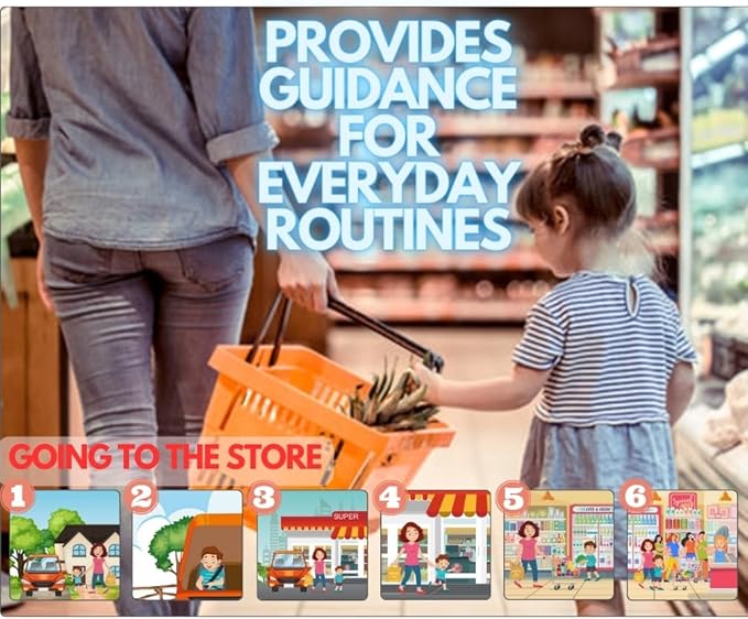 - In the Box: Includes 54 Themed Storytelling Cards in 9 categories: Going to the Store, Going to School, After-School Routine, Bedtime Routine, At School, Going to the Park, Going to an Amusement Park, Play and Clean-up Routine, and Helping with the Chores