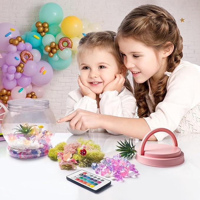 Unicorn Terrarium Kit for Kids, Birthday Gifts for Girls, Unicorn Toys, LED Night Light Up & Remote, DIY Unicorn Arts and Crafts Kit for Kids Age 4 5 6 7 8-12 Year Old