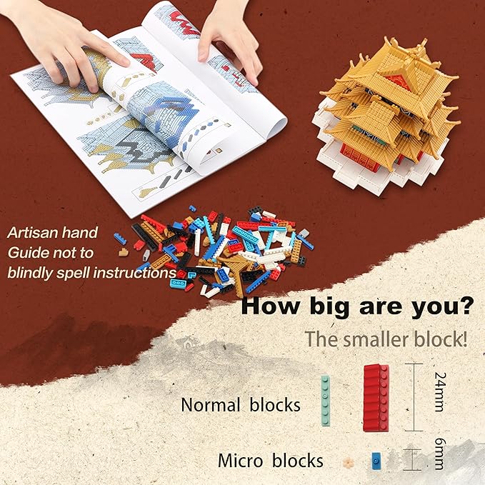 - Enhances Fine Motor Skills: Assemble and connect 2460 particles to bring the Turret of Palace Museum to life! This engaging process strengthens finger dexterity, fine motor skills, and improves concentration, providing a rewarding and educational experience