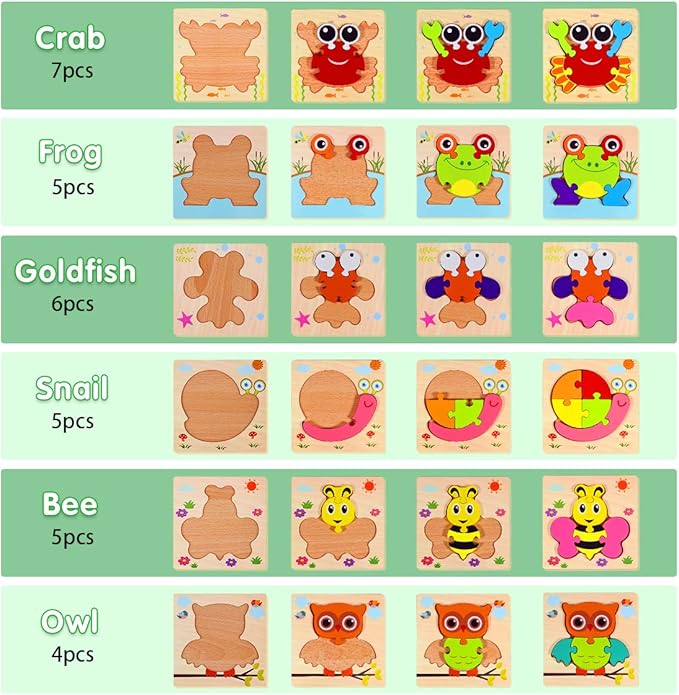 - Educational Montessori Toys - 6 sets of kids puzzles features of common marine animals. Each theme featuring vibrant colors and adorable pictures. Puzzles help cultivate children's constructive thinking and imagination, develop hand-eye coordination, cognitive abilities, and fine motor skills