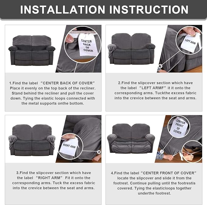 - SIZE & WARRANTY: The super stretchy chair cover for recliner are available for recliner chair fit for 69-91"width, 29-37"height,26-34"side width. Highly recommended for leather recliner chair, cloth recliner chair. Please measure your chair size refer to the MEASURE ADVICE before purchasing. We think our high quality furniture protectors can satisfy you.