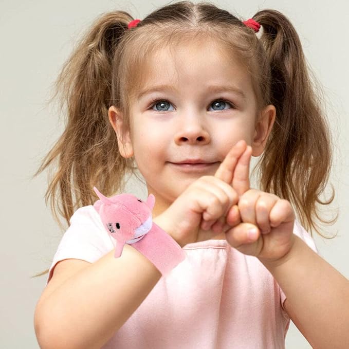 - Stuffed Animal Plush Wristband: The huggers slap bracelet is easy and convenient to wear. You can wear the plush animal slap bracelet with just a tap on your arm, backpack or bicycle frame. It can also be used as a cute accessory for daily clothing