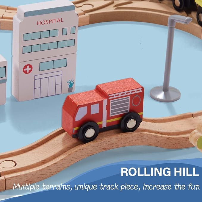 Giant bean 117 Pcs Busy Port City Train Set for Kids- Expandable & Changeable Wooden Train Track Set Toddler Toy, for Boys & Girls Ages 3+