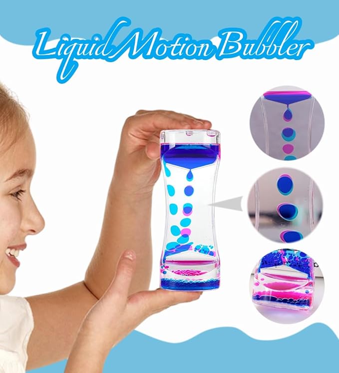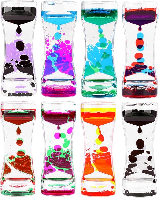 - Colorful Colors : The order includes 8 pieces of liquid motion bubbler timers, each timer has its own unique color to give you more choices. The sensory toy measures 5.4 * 2.1 inches, easy for children to hold. Try looking at the liquid motion when you're distracted, they are not only sensory toys, they can also be decorations for your home or office