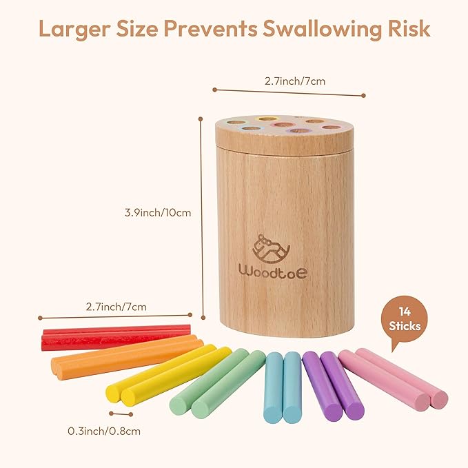 - Montessori Sticks for Kids - Our wooden sorting toy includes 14 wooden sticks in 7 colors, each stick has a diameter of 0.31 inches and a length of 2.76 inches. The appropriate length can effectively prevent the risk of suffocation for babies. Children insert the colored sticks into the corresponding color slots, and the abundant color matching game will keep the baby busy